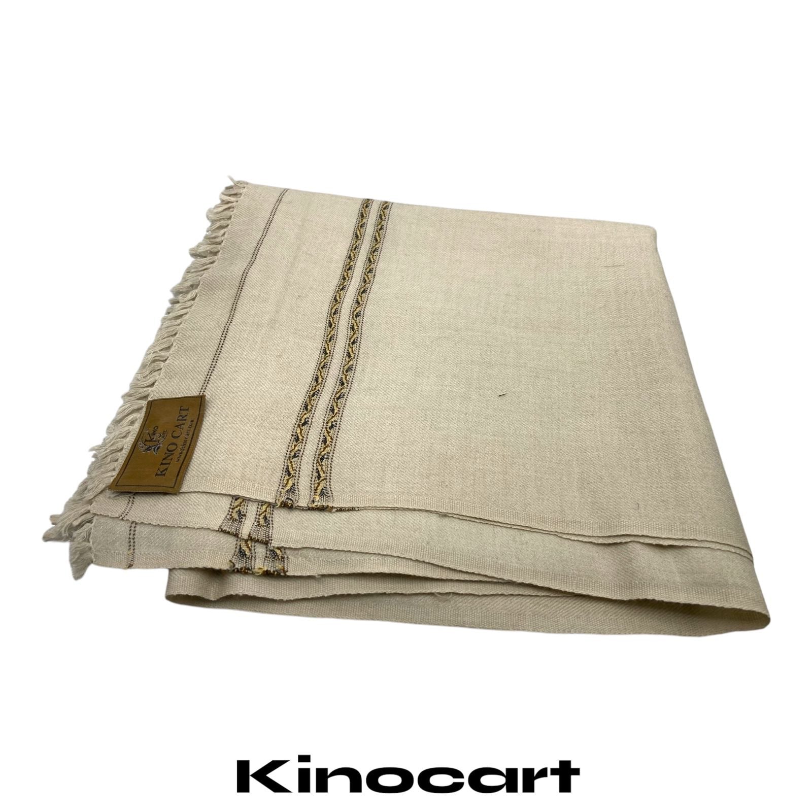 Luxurious Cream Woollen Shawl with Traditional Stripes