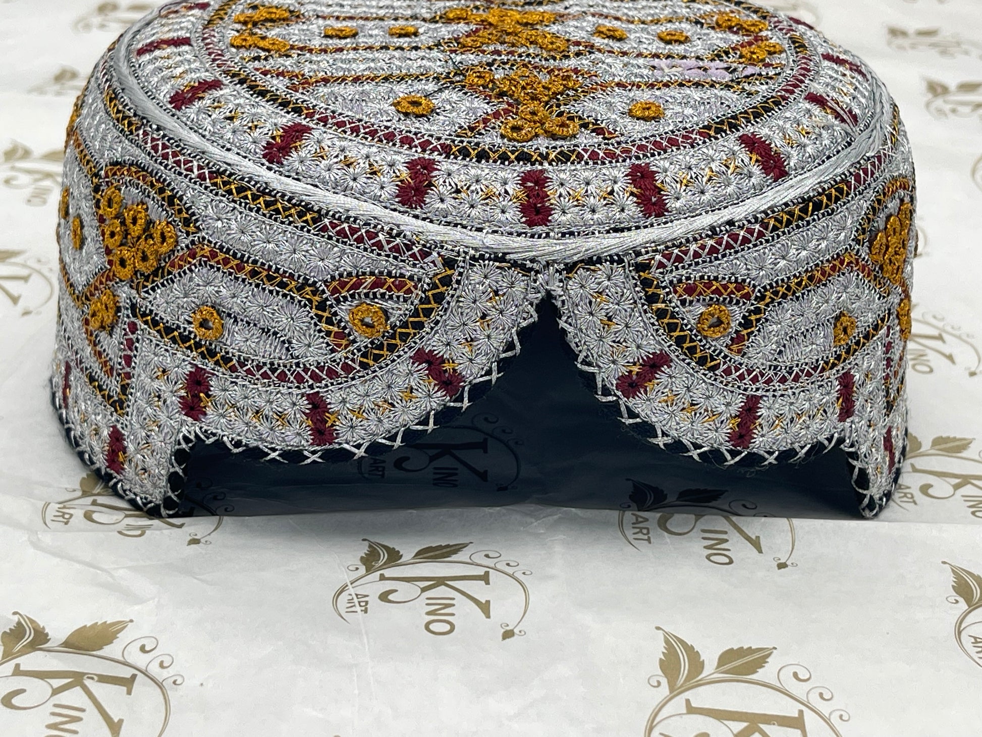 Authentic Silver Sindhi Topi – Traditional Handcrafted Cap for Men | Elegant Cultural Headwear