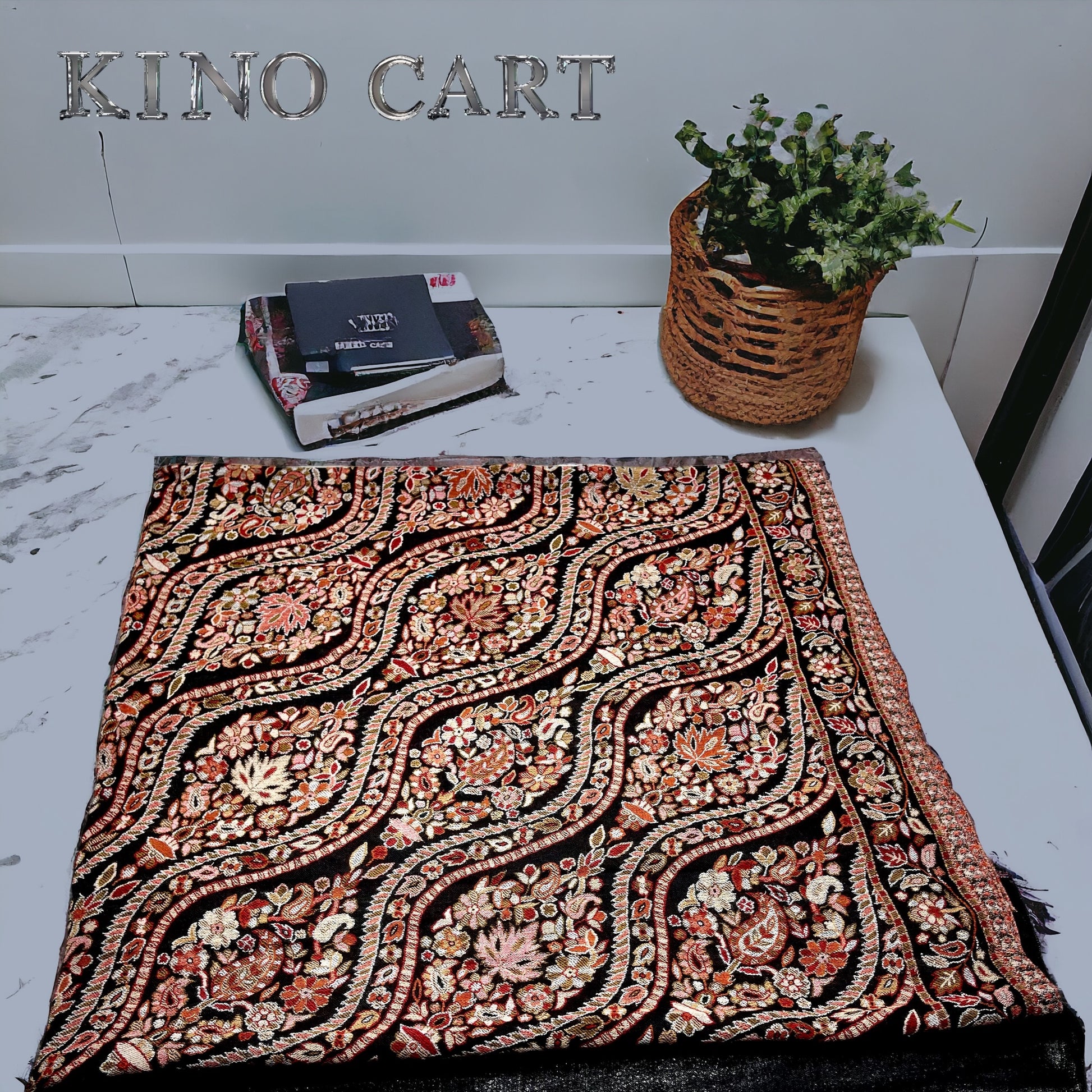 Experience unparalleled luxury with our pure black pashmina shawl, handcrafted by skilled artisans in Kashmir. This exquisite piece, also known as a Kani Shawl, is made from the finest quality pashmina wool, renowned for its unmatched softness, warmth, and lightweight feel.
