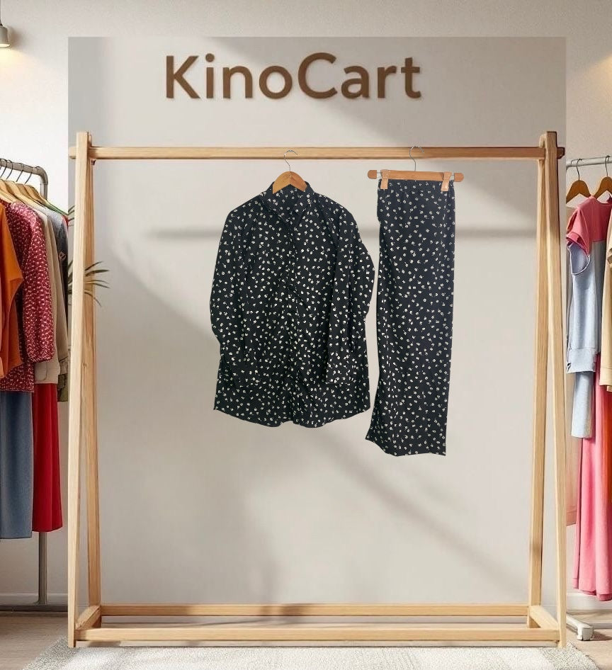 Discover the timeless charm of the black with white dots 2-piece ladies western-style clothing at Kinocart. This elegant outfit combines a classic black base with playful white dots, offering a chic and sophisticated look. Designed for the modern woman, it delivers both comfort and style, making it perfect for a wide range of occasions. Whether you’re attending a casual gathering or dressing up for a more formal event, this ready-to-wear set ensures you’ll stand out with confidence and flair.