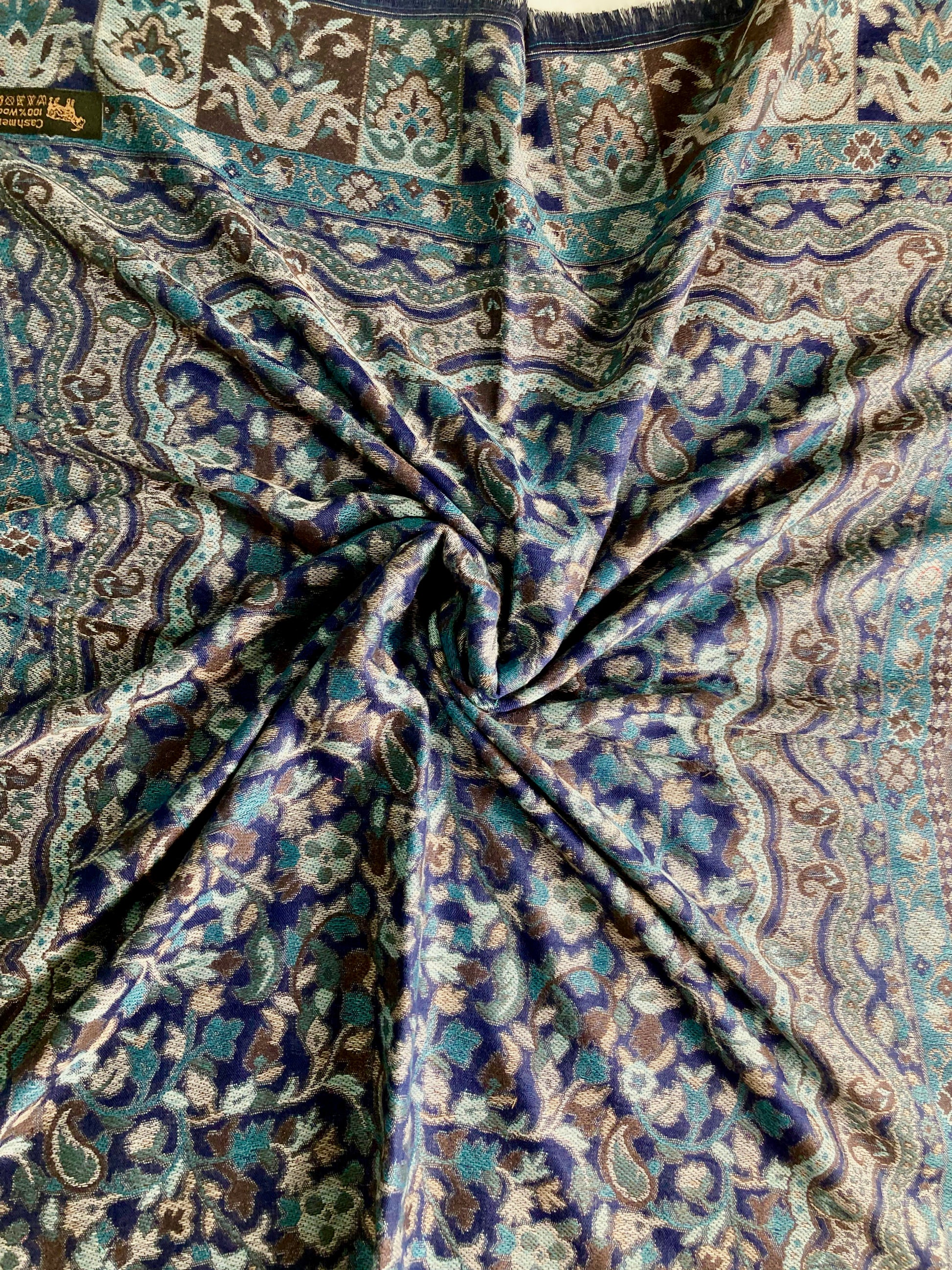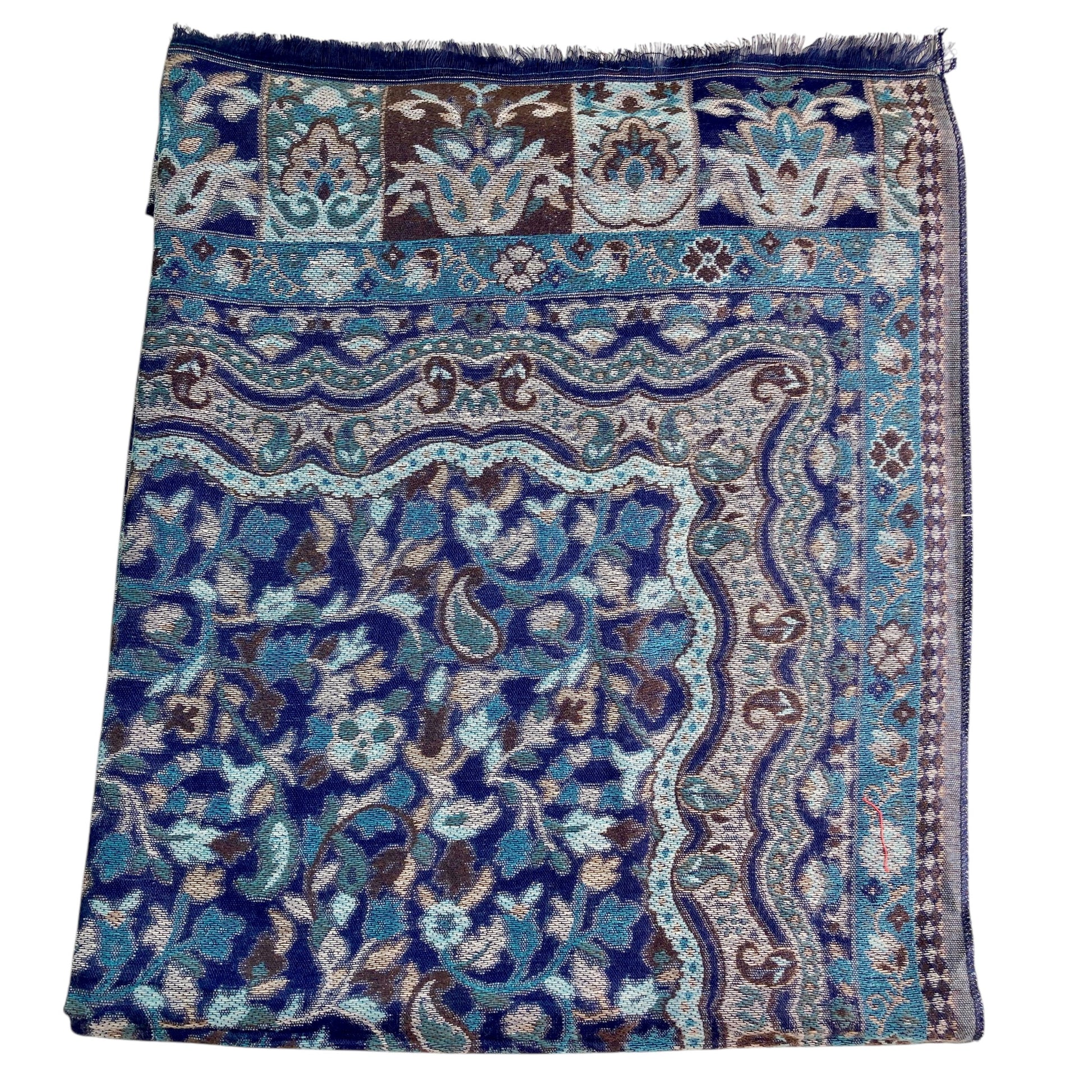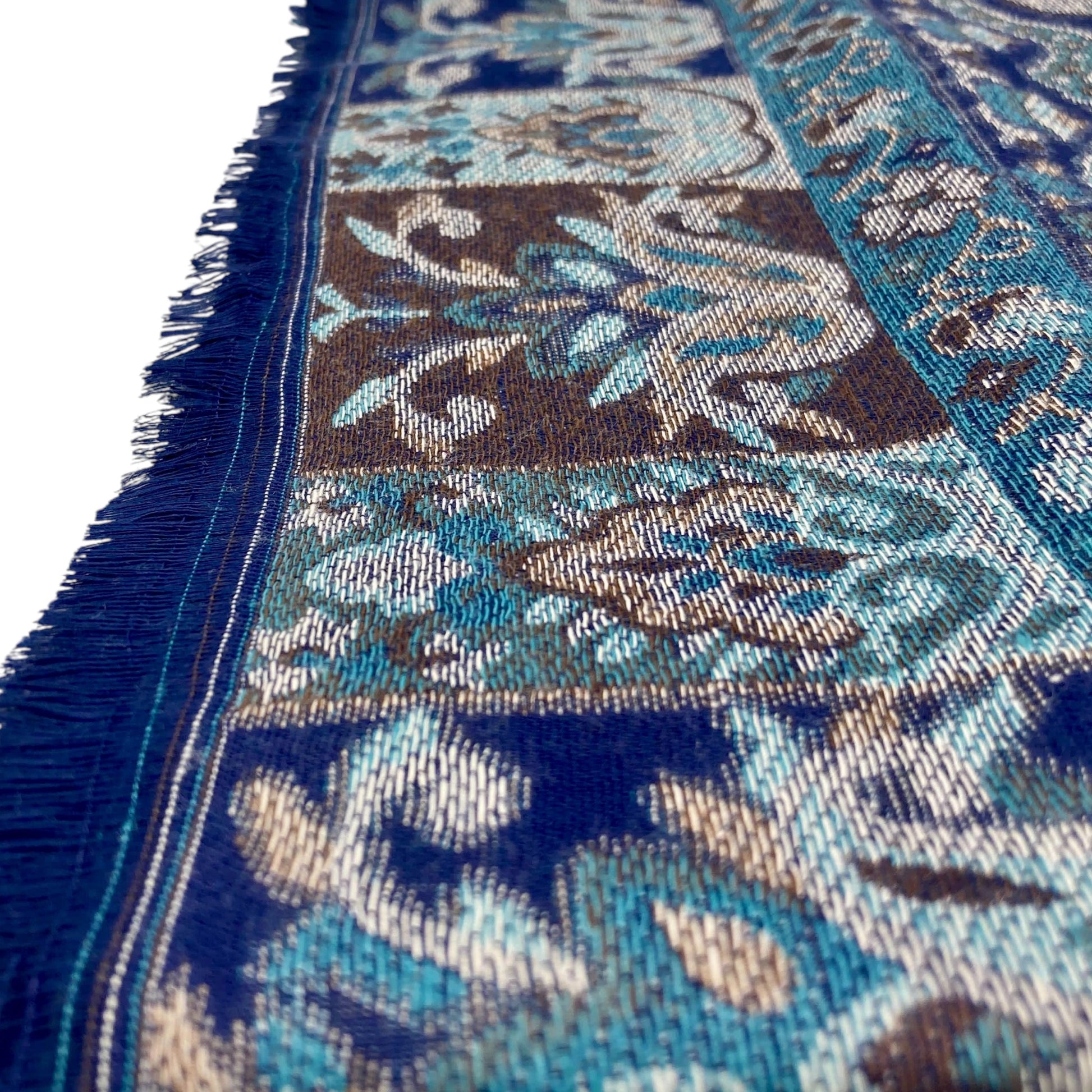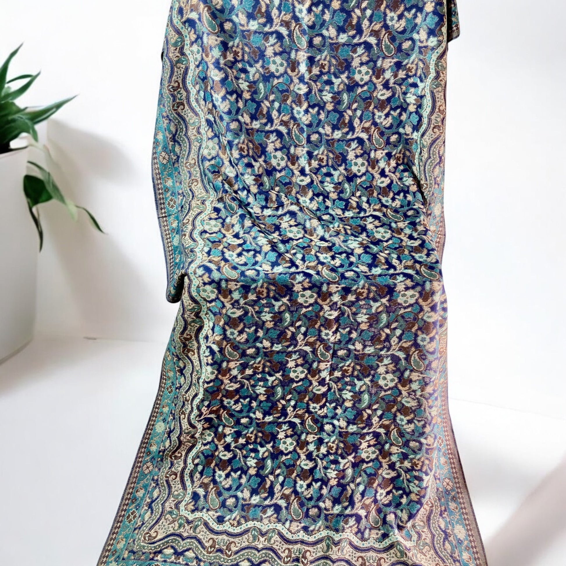 Elegant Blue Floral Cashmere Pashmina Kani Stole