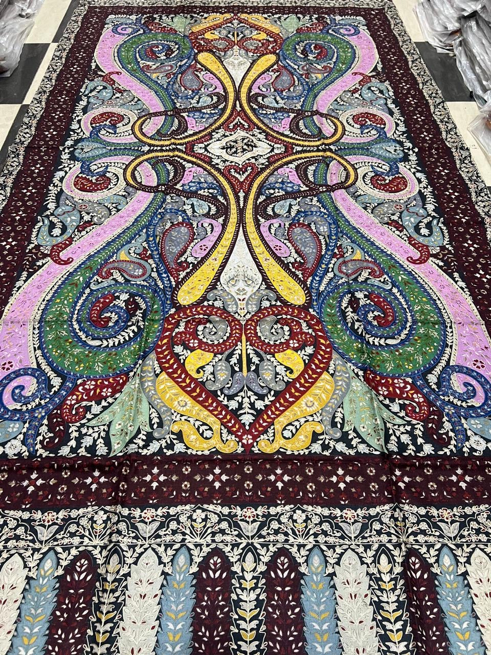 100% handmade multicolor Kalamkari shawl from Kashmir