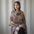 This design recalls the opulence once worn by Mughal kings and queens, where bold paisley motifs symbolized wealth and status. Perfect for formal gatherings, weddings, or festive evenings, this shawl is a masterpiece that connects art, fashion, and history.