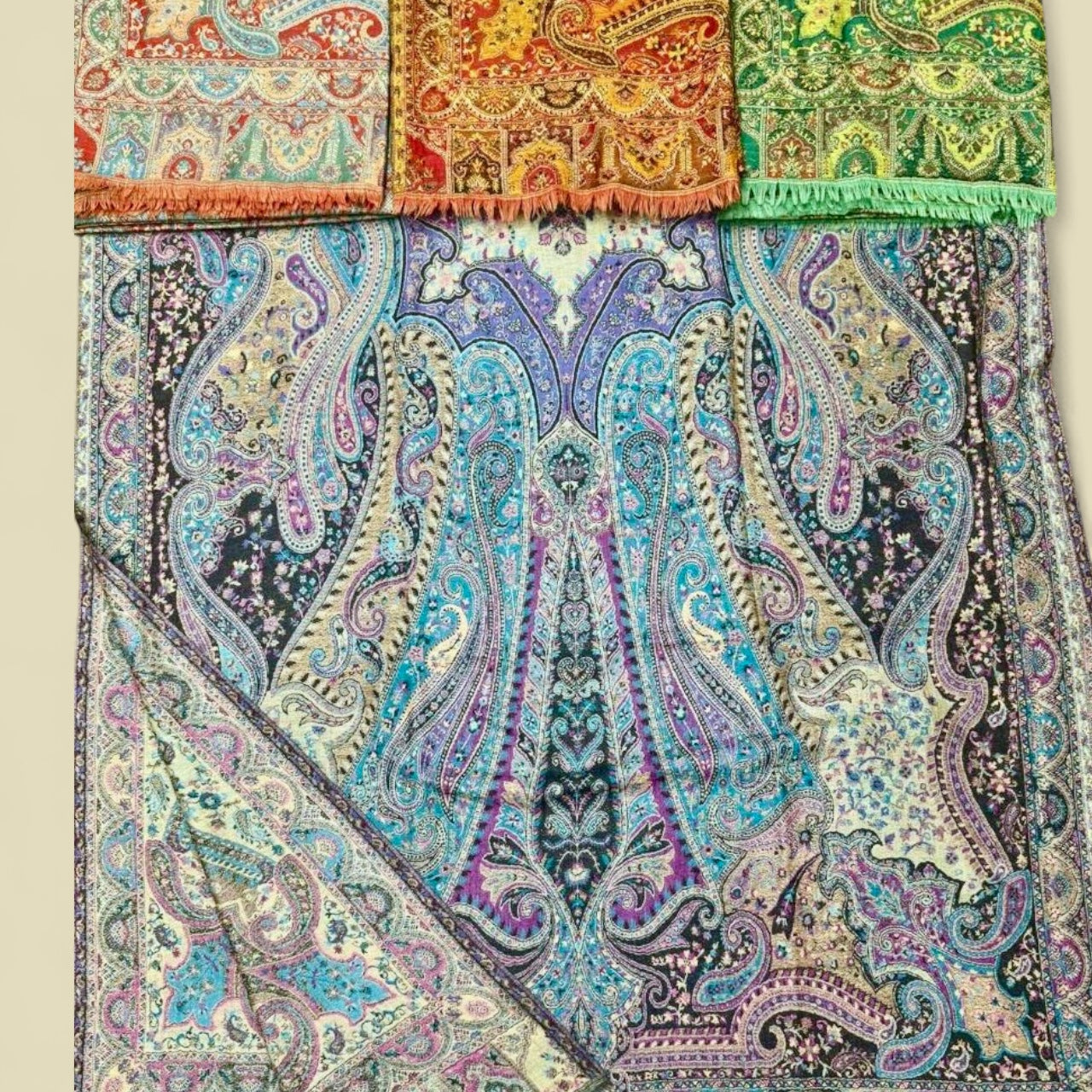 Kani Pashmina Shawl Collection – Premium Handmade Kashmiri Wool in Green, Red, Orange & Multicolor by Kinocart