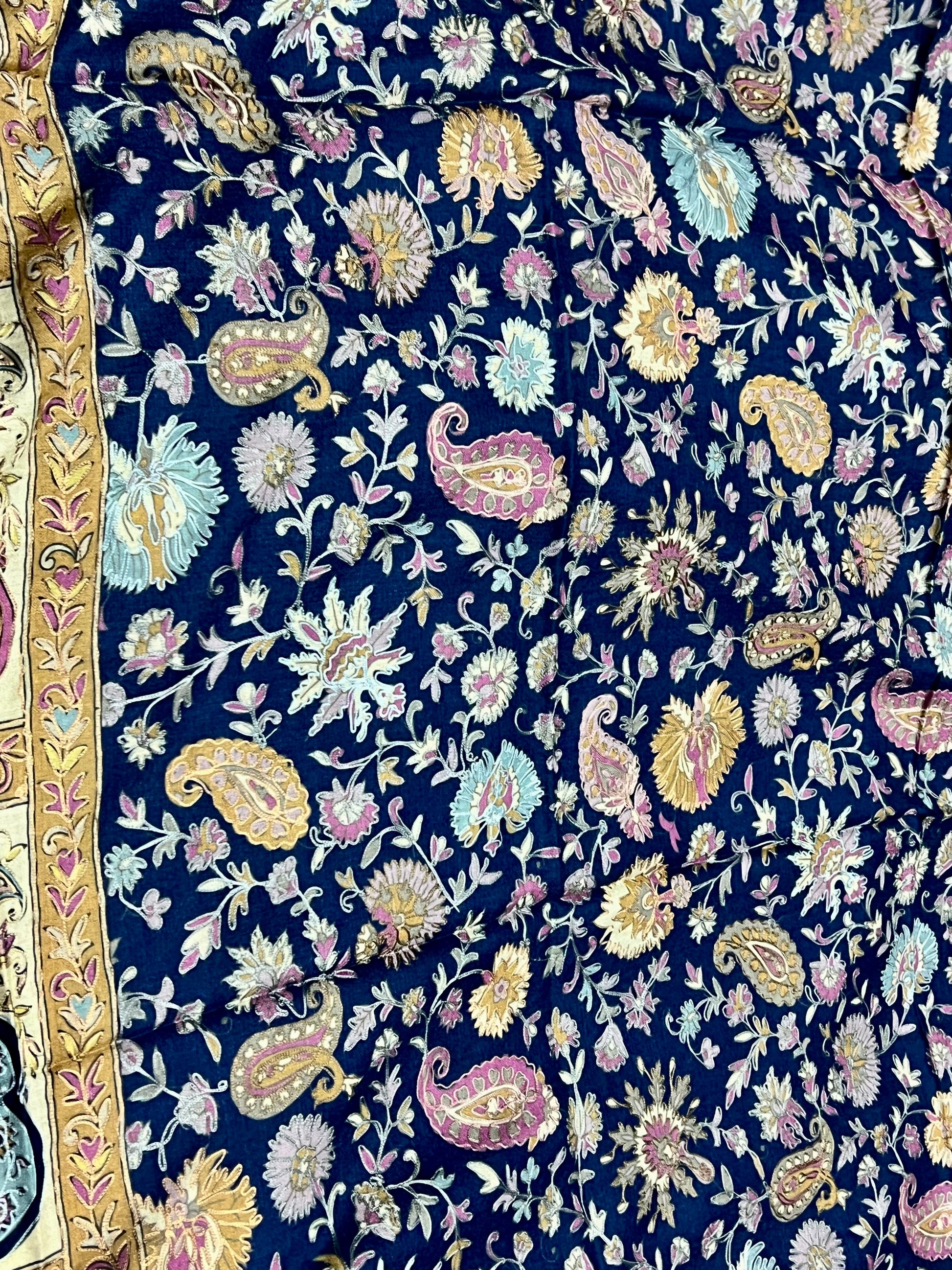 Luxury Kalamkari Pashmina Shawl |Navy blue | Black
