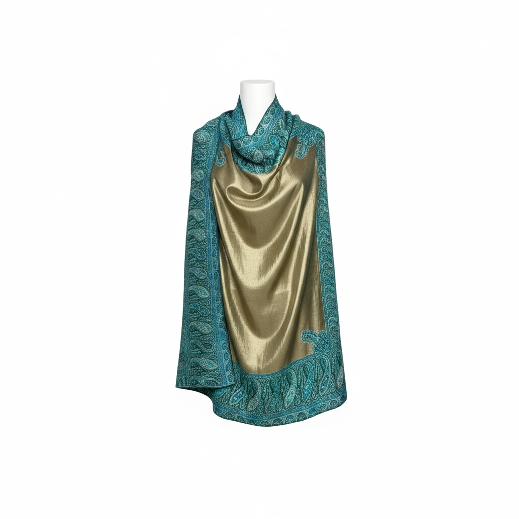 Moonlight Pashmina Shawl – Golden & Sea Green Handmade Luxury