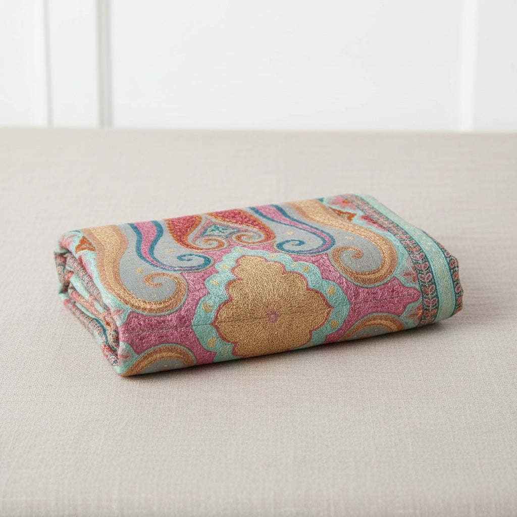 • Dry clean only to preserve the shawl’s intricate designs and vibrant colors