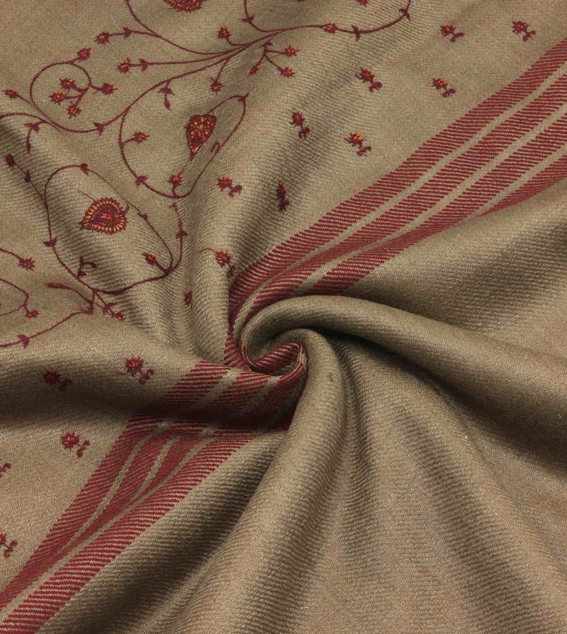 Premium Dark Brown Pashmina Shawl with Red Hand Embroidery – Luxury Winter Wrap | KinoCart