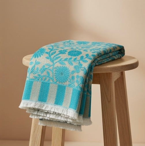The Turquoise Bloom kalamkari Pashmina shawl is an exquisite blend of luxury, tradition, and craftsmanship. Handwoven with the finest Pashmina wool, this shawl features intricate floral motifs and elegant patterns, showcasing the rich artistry of the Qalamkar technique. The refreshing turquoise background, adorned with vibrant floral accents, makes it a standout piece, perfect for adding a touch of sophistication to any outfit.