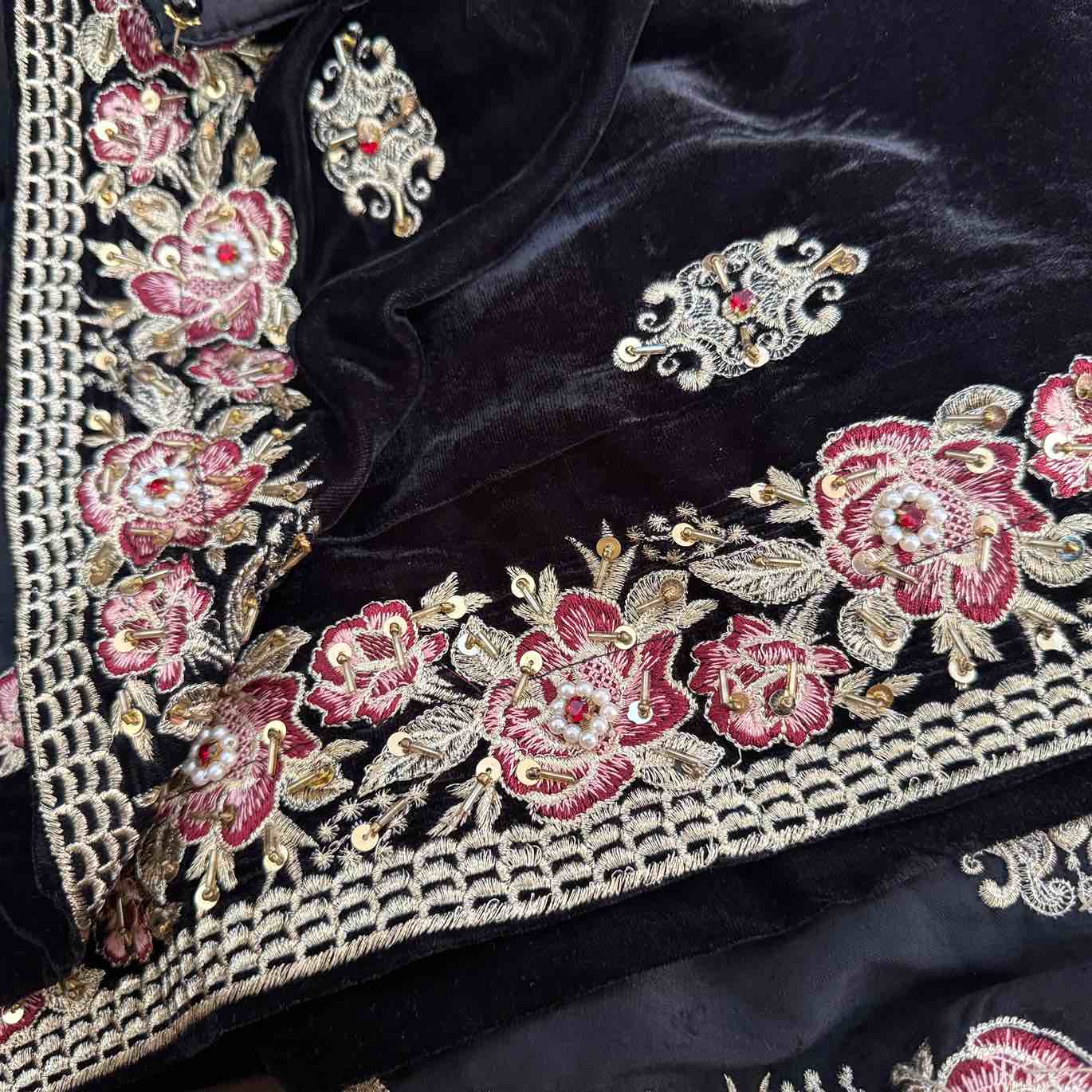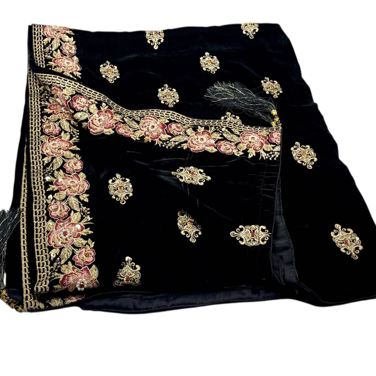 Enhance your winter elegance with this premium black embroidered velvet shawl by KinoCart. Designed with fine embroidery on rich velvet fabric, this shawl delivers a luxurious feel, exceptional warmth, and a graceful look. Perfect for Pakistani winter fashion, formal wear, weddings, and evening occasions.