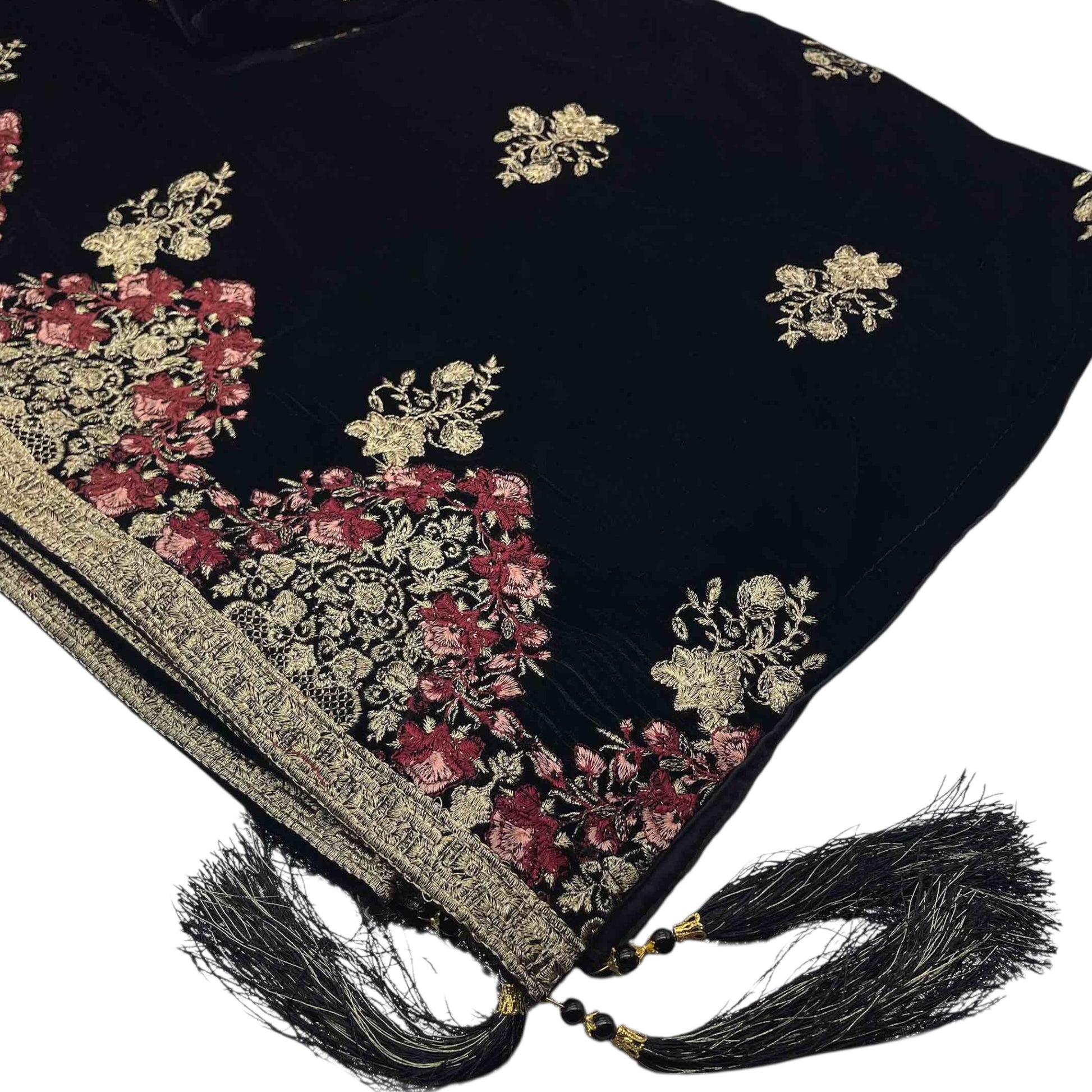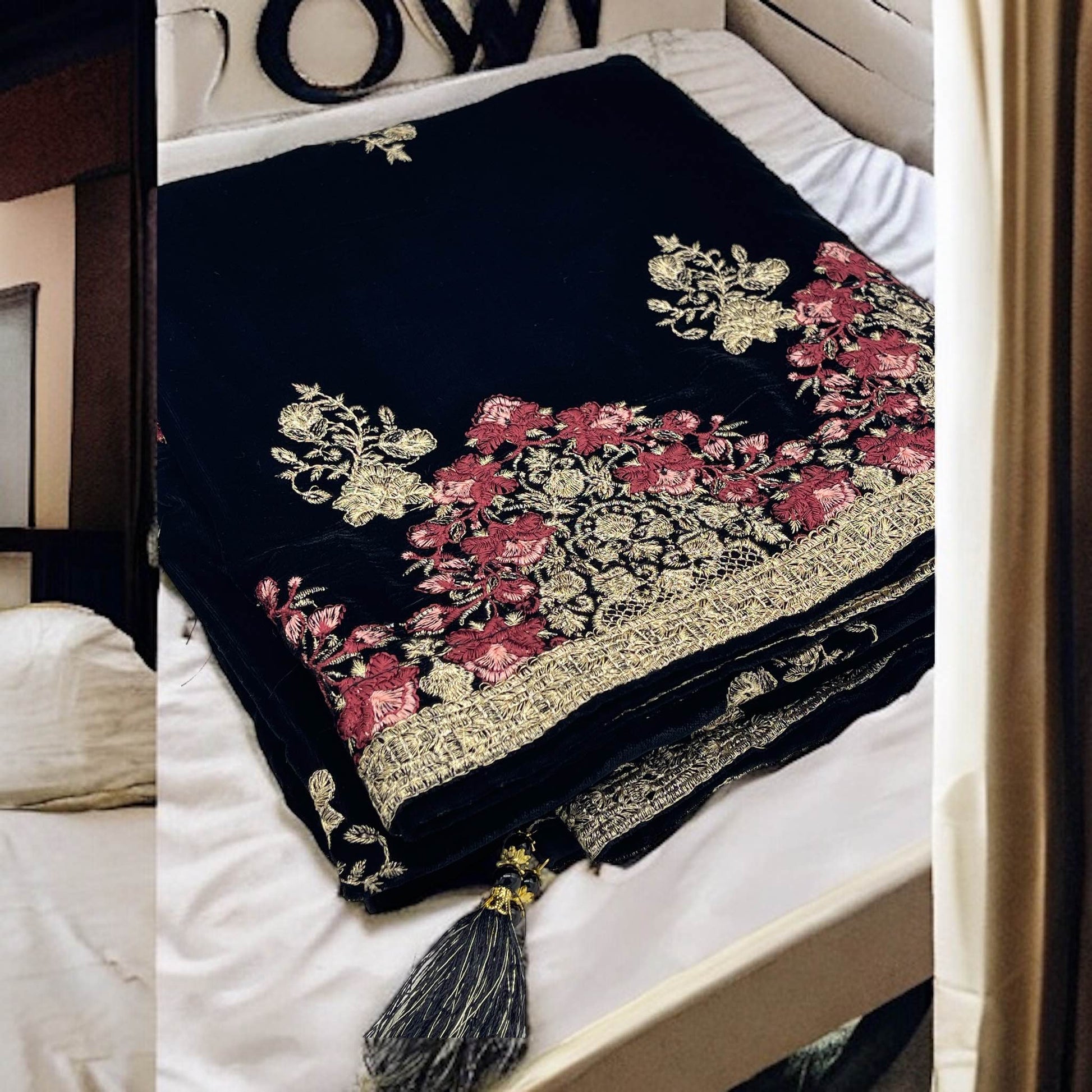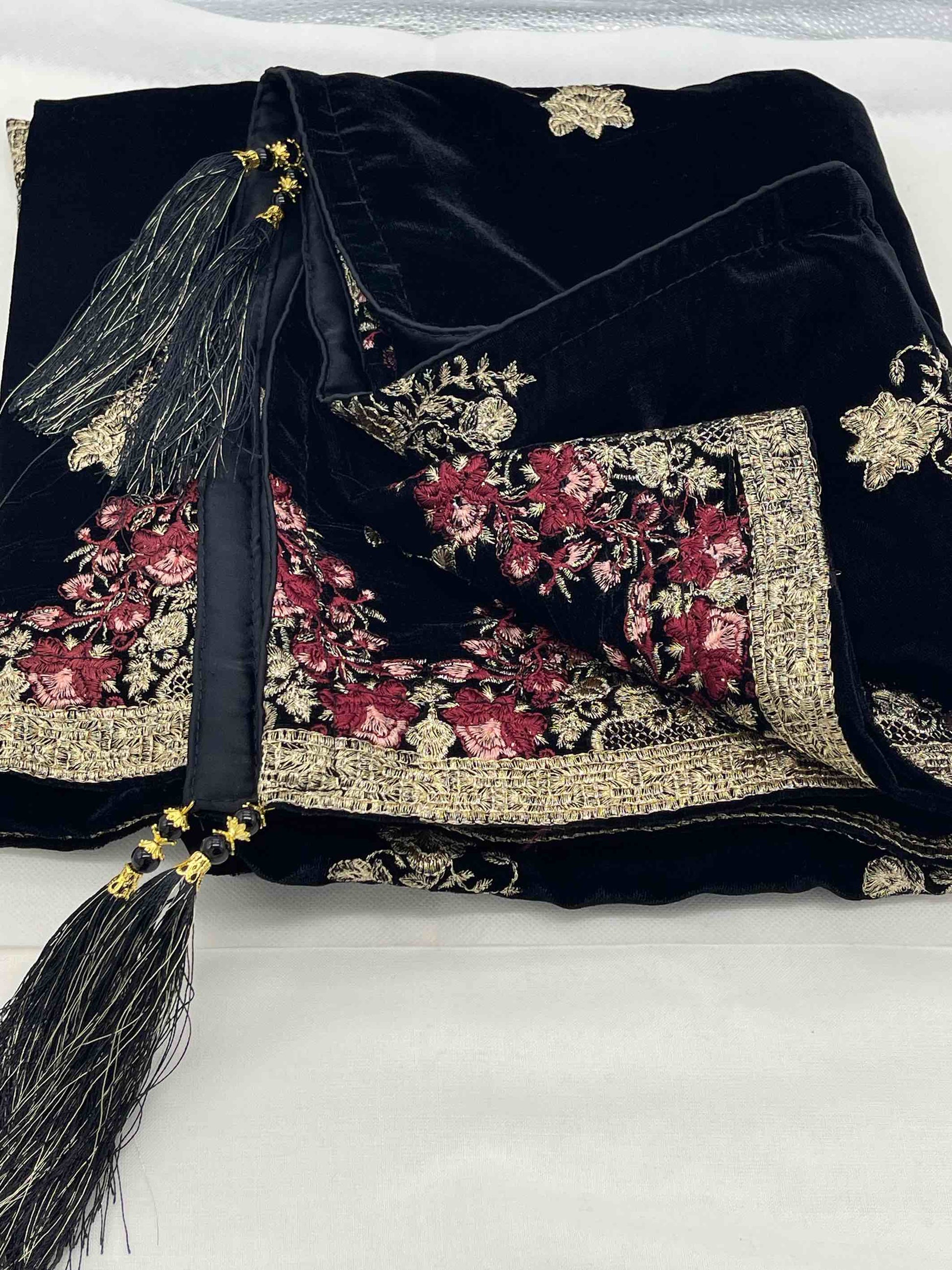 Black Velvet Shawl with Tela Work Embroidery – Premium Winter Collection by KinoCart