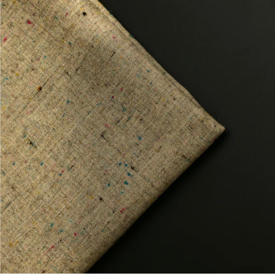Signature Speckled Tweed: The fabric features woven multi-color specks (known as donegal or tweed) on a deep Brown base, creating a rich, complex texture perfect for bespoke jackets, coats, or premium winter shalwar kameez.
