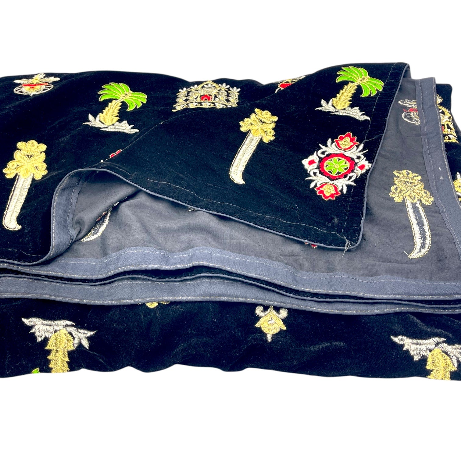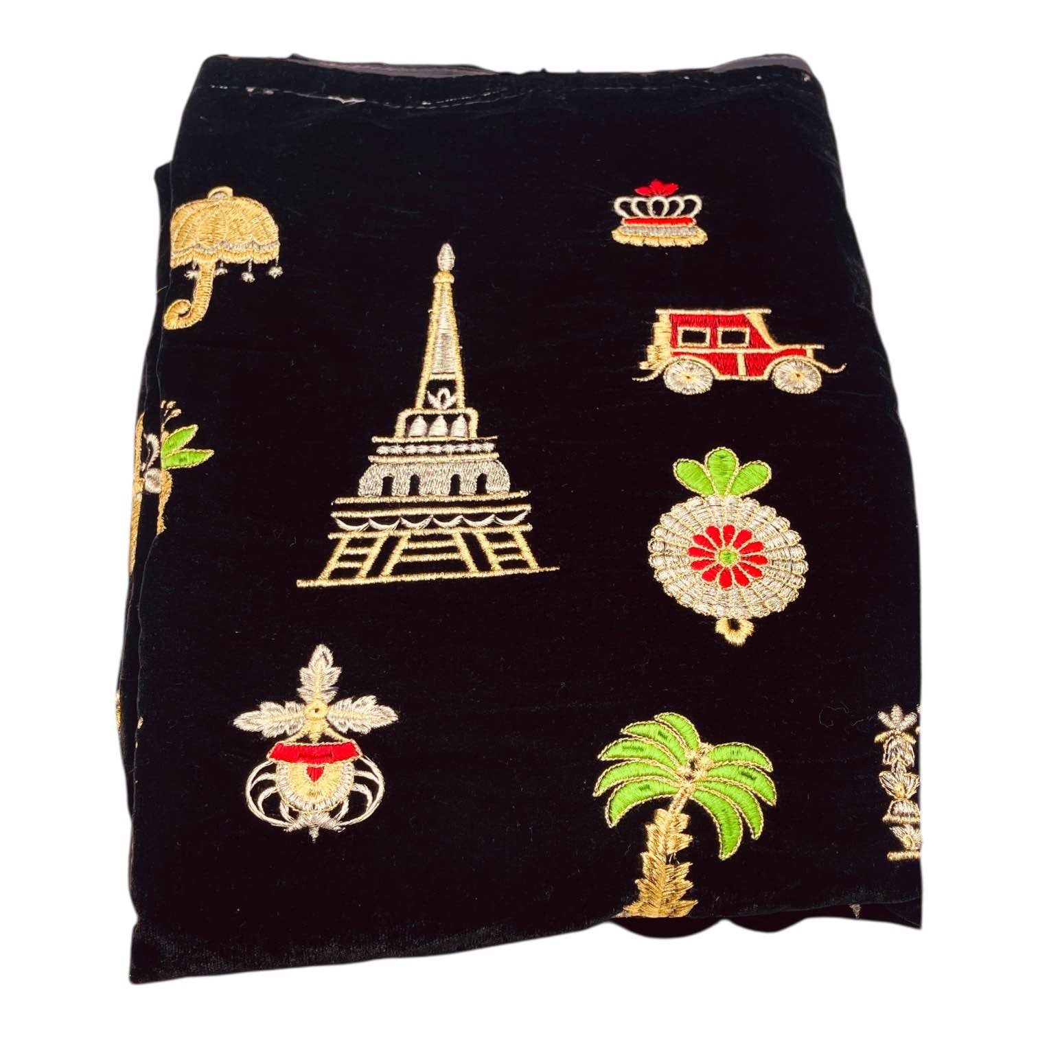Black Paris-Inspired Embroidered Velvet Shawl