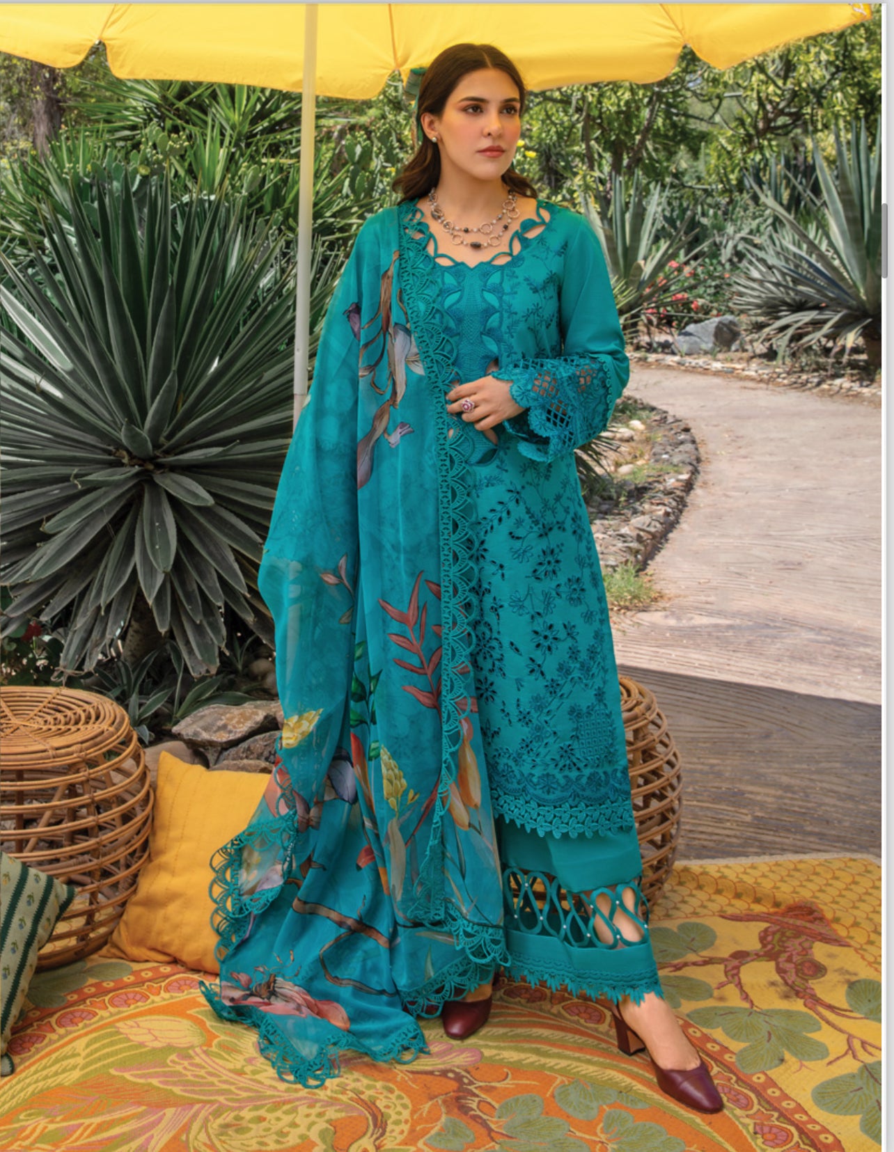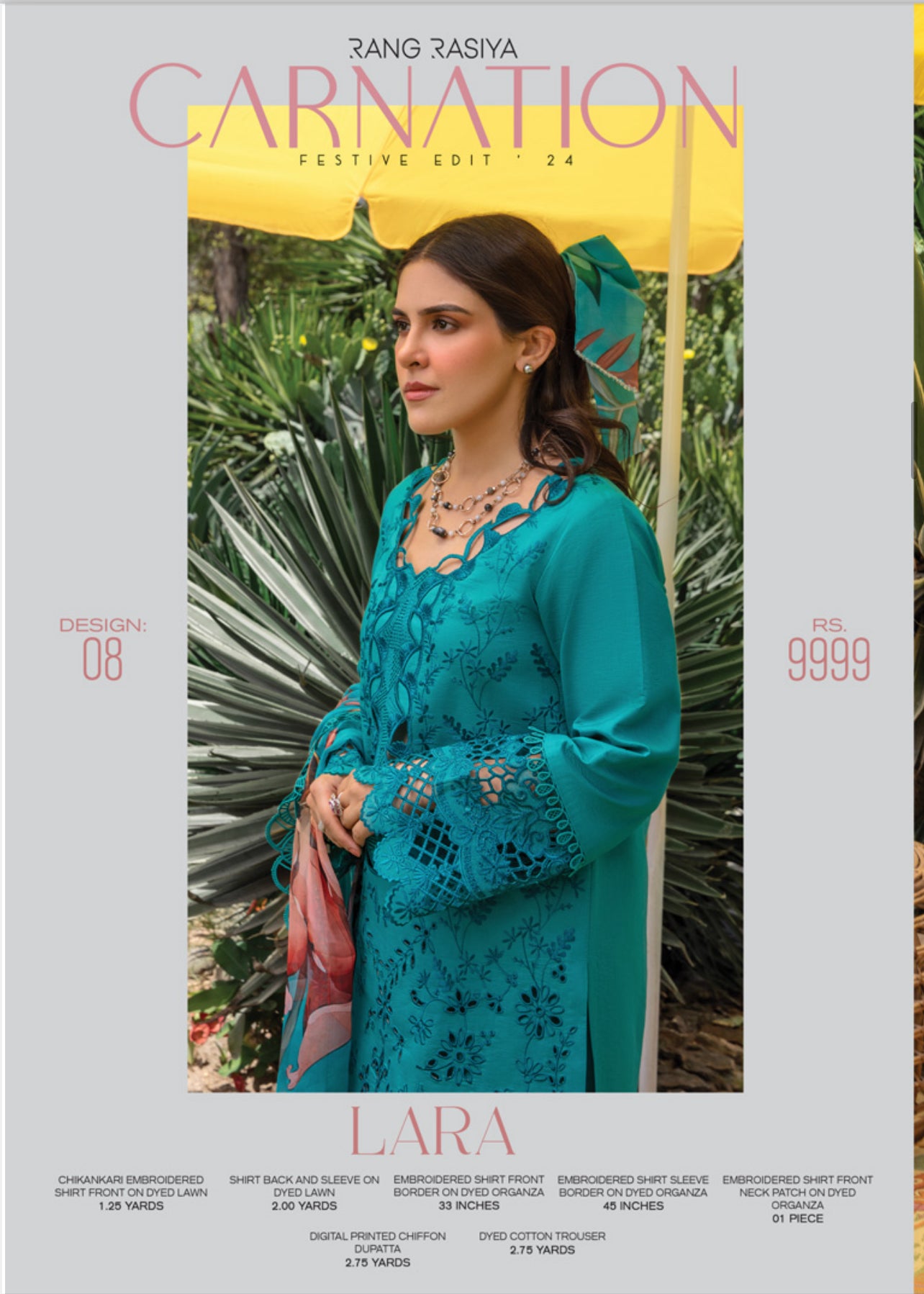 Indulge in the timeless beauty of the Rang Rasiya Chikankari suit. This captivating ensemble showcases intricate Chikankari embroidery, a traditional art form known for its delicate hand-stitched designs.