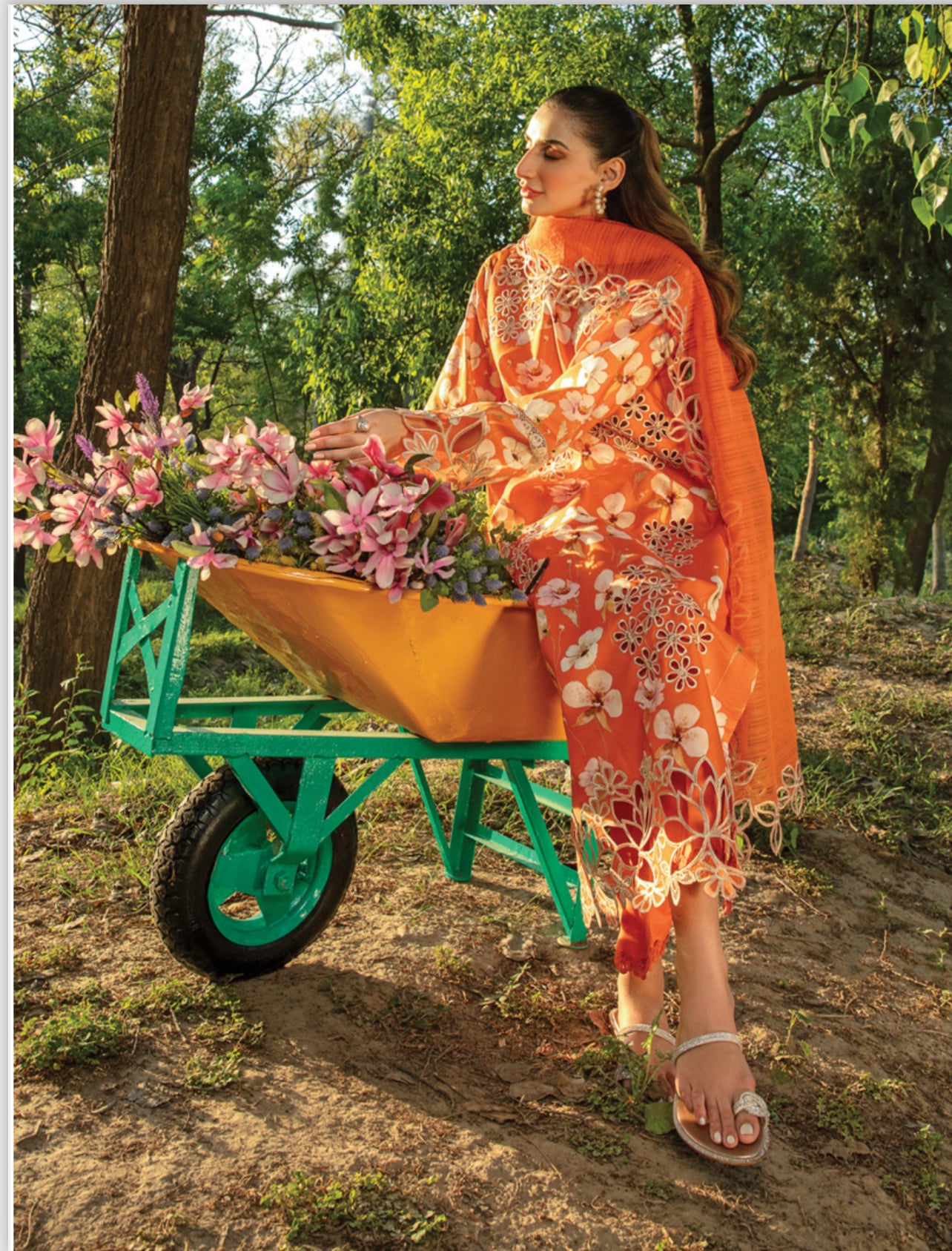 Unveil your unique charm with the Rang Rasiya Orang Chikankari Suit in the stunning Carnation Edition 24,exclusively available at Kinocart.com.
