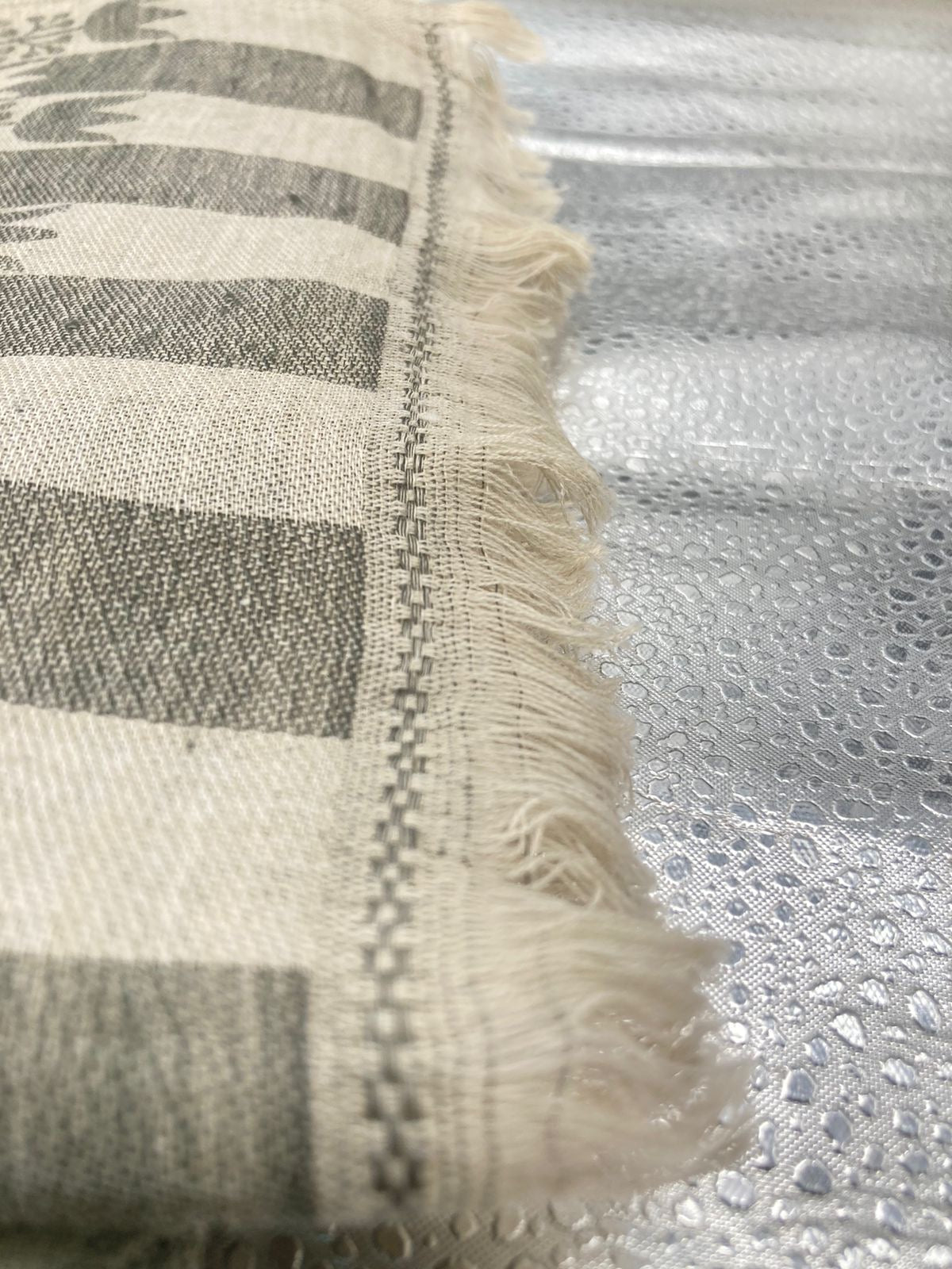 This stylish shawl is a wardrobe essential for anyone seeking both practicality and style. The neutral colors and elegant pattern make it an effortless match for any outfit.